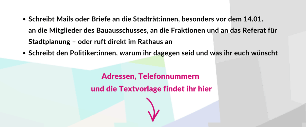 Schreibt Mails oder Briefe an die Stadträt:innen: Adressenliste und Textvorlage
